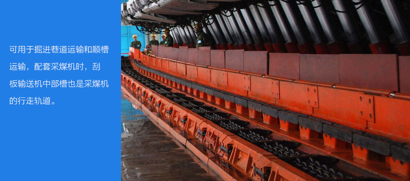 主要用于煤矿薄煤层或极薄煤层、中厚或厚煤层和缓倾斜煤层炮采、普采、高档普采、综采综放等工作面输送煤炭,也可用于掘进巷道运输和顺槽运输,配套采煤机时,刮板输送机中部槽也是采煤机的行走轨道。