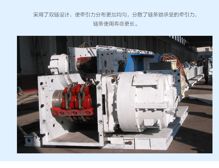 6、由于采用了双链设计,使牵引力分布更加均匀,分散了链条锁承受的牵引力,链条使用寿命更长。