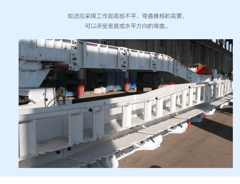 2、能适应采煤工作面底板不平、弯曲推移的需要,可以承受垂直或水平方向的弯曲。