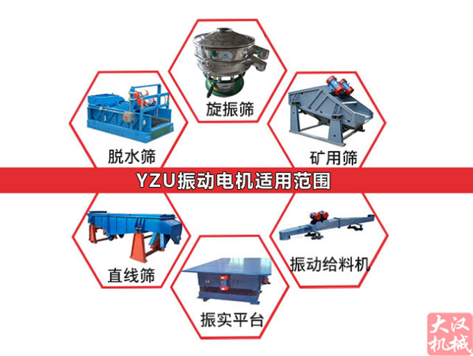 振动电机是动力源与振动源结合为一体的激振源,振动电机是在转子轴两端各安装一组可调偏心块,利用轴及偏心块高速旋转产生的离心力得到激振力。振动电机的激振力利用率高、能耗小、噪音低、寿命长。振动电机的激振力可以无级调节,使用方便,JZO、YZU、YZO、 YZS、YZD、TZDC 等型号的振动电机为通用型振动电机。振动电机可以应用于一般振动机械,如:振动破碎机、振动筛分机、振动打包机、振动落砂机、振动造型机、振动打桩机、振动提升机、振动充填机、料仓的振动破拱防闭塞装置等等。广泛的应用在水电建设、火力发电、建筑、建材、化工、采矿、煤炭、冶金、轻工等工业部门。